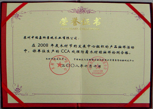 我公司在2013年在中國木材保護工業(yè)協(xié)會進行的產(chǎn)品抽檢活動中,依據(jù)GB/T22102-2008標準要求檢測進過處理過的CCA、ACQ防腐木,達到C3級要求。